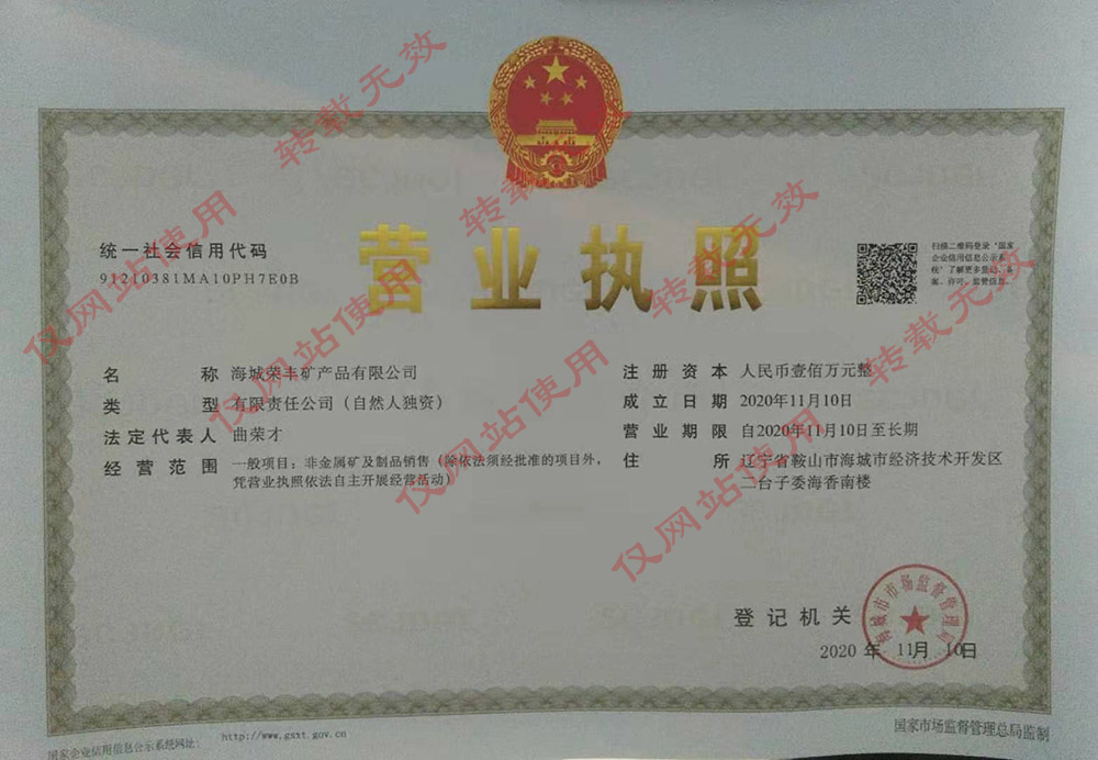 版權(quán)所有:海城榮豐礦產(chǎn)品有限公司 咨詢(xún)電話(huà):13604120688  地址:遼寧省海城市鐵西開(kāi)發(fā)區(qū)黃河路52號(hào)  遼ICP備16002086號(hào)-1